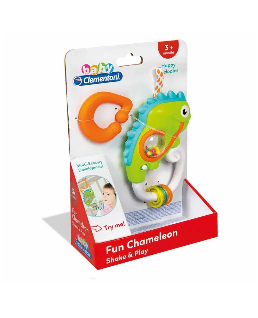 Çıngırak sallandığında, eğlendirici melodiler ve ses efektleri devreye girer. Bukalemunun karnındaki toplar ve renkli halkalar bebeğinizin dikkatini çekerek dokunma algısını geliştirir.