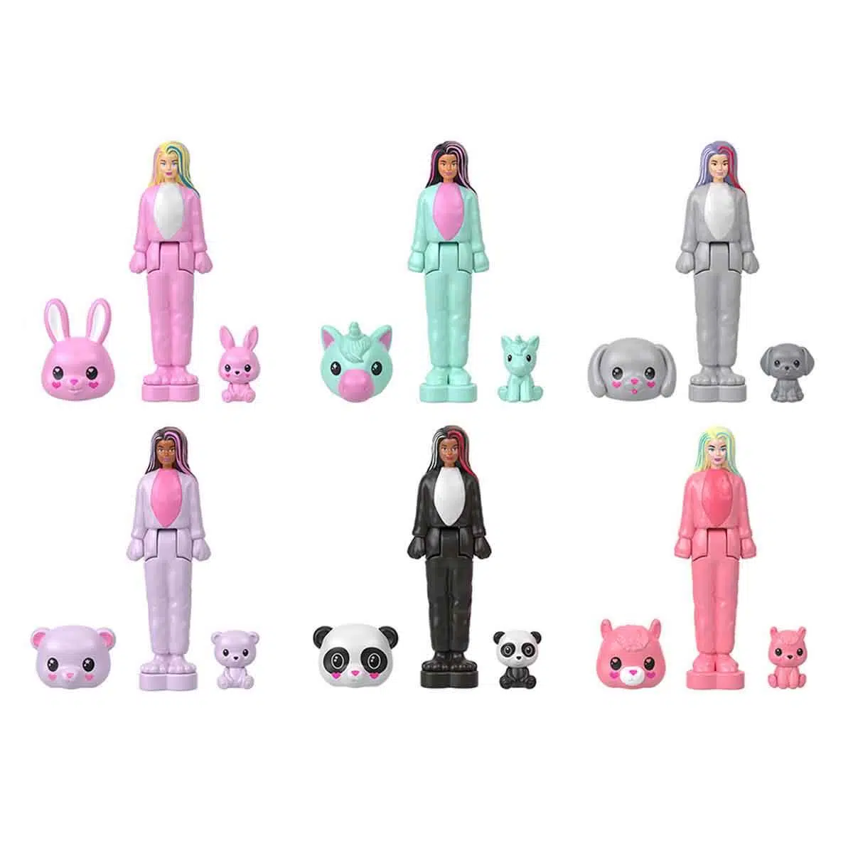 Kutu açma eğlencesi için tüpü açın, sevimli pelüş hayvan kostümü giyen 4 cm'lik Barbie'yi ve mini hayvan dostunu ortaya çıkarın. Bebeğin saçlarını ve yüzünü görmek için kostüm başlığını kaldırın. Tıpkı tam boyutlu bebekler gibi her mini bebek, benzersiz görünüme sahiptir. Seride tavşan, tek boynuzlu at, panda, köpek, ayı ve lama figürleri bulunur. Arkadaşlık oyunları ve hikayeler için daha da şirin hayvan dostunu keşfedin. 4 yaş ve üzeri hayranlar, kendi mini dünyalarını yaratmak için bu şirin bebeklerin hepsini koleksiyonlarına eklemek isteyecek.