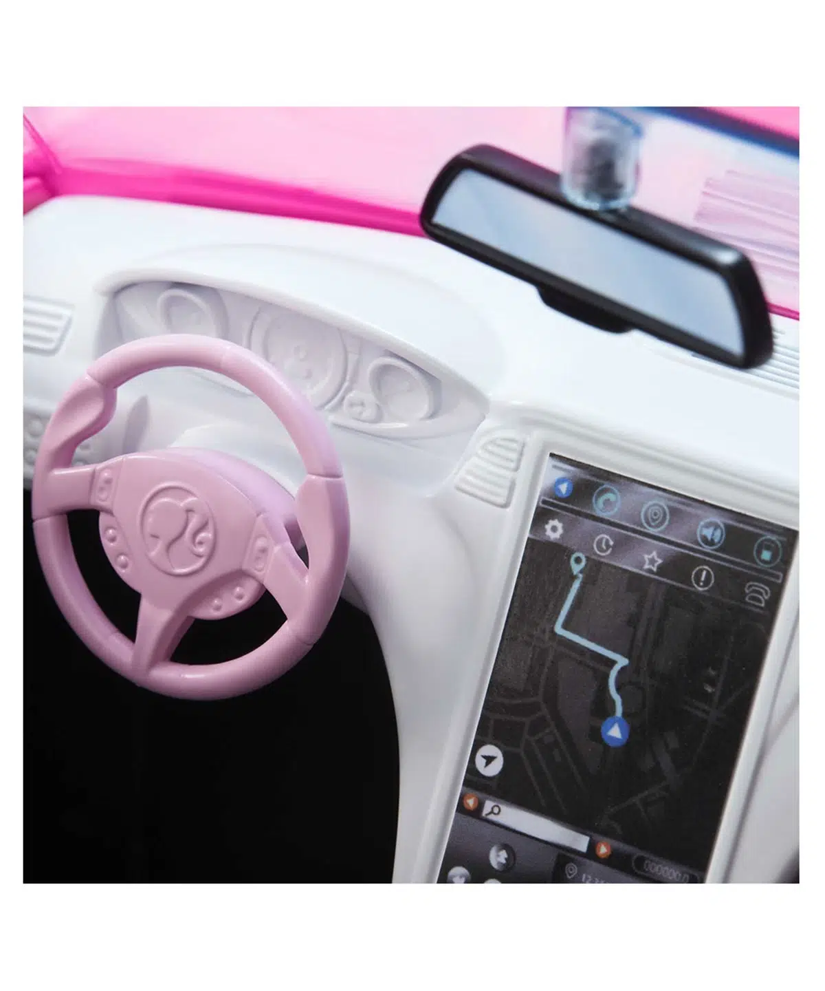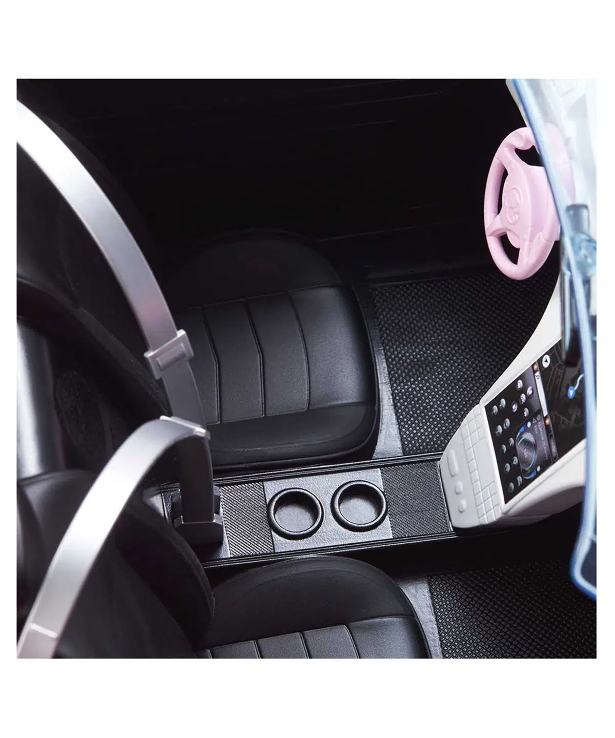 Dışı pembe, iç kısmı siyah olan bu spor araba; emniyet kemerleri, dikiz aynası ve mat siyah tampon ızgarası gibi gerçeğe uygun ayrıntılarla tasarlandı.