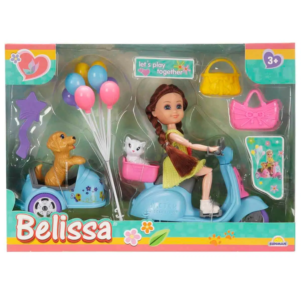 Belissa`nın Sepetli Motosikleti ve Sevimli Köpeği 29800 Mavi Motosiklet