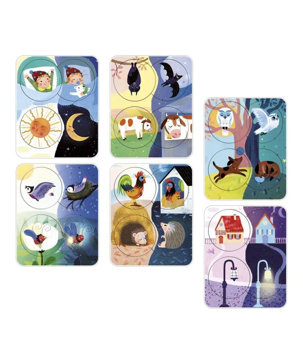 Nesnelerin, hayvanların ve etrafımızdaki her şeyin geceleri nasıl farklı göründüğünü keşfetmek için bir ilişkilendirme oyunu.