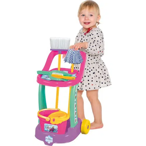 Frozen Temizlik ArabasıAnneleri ile birlikte ev temizliği yapan çocukların eğlenceli vakit geçirmesi için muhteşem bir oyuncak.Frozen Oyuncak Temizlik Seti ile çocuklar hem merakını giderecek hem de eşyalarını arabası sayesinde kolayca taşıyacak.9 parçadan oluşan oyuncak vileda takımında; oyuncak vileda kovası, faraş, süpürge gibi aksesuarlar çıkmaktadır.Frozen Oyuncak Temizlik Seti boyutları : 48 x 36 x 31,5 cm'dir.Frozen Oyuncak Temizlik Seti miniklerin evde ve dışarıda en iyi oyun arkadaşı olacak.Çocuklar oyuncak temizlik arabasını her yere yanlarında götürmek isteyecekler.Çocukların yetişkinleri taklit ederek oyunlar oynamasını ve böylece hayatı oyunlarla öğrenmelerini sağlayan bir oyuncaktır.