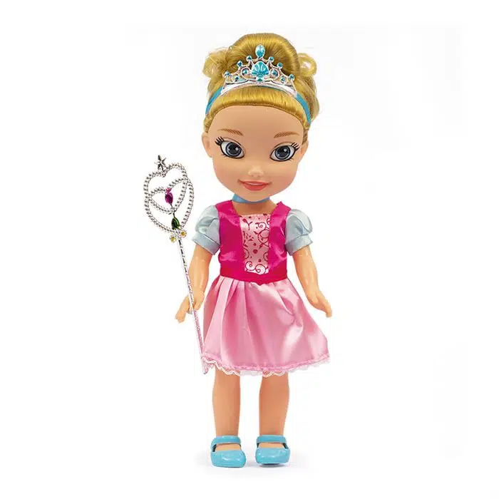 Disney dünyasındaki görünümüyle tasarlanan 35 cm uzunluğundaki Sinderella, kumaş kıyafetleri, göz alıcı tacı ve asasıyla geliyor.