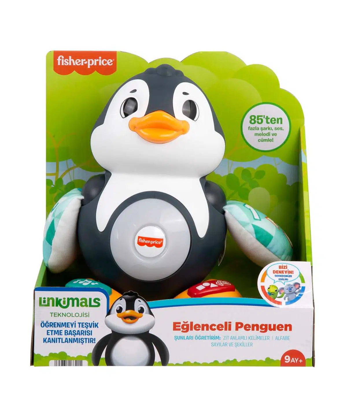 Fisher Price Linkimals Eğlenceli Penguen oyuncağı farklı şarkıları, çok renkli ışıkları ve eğlenceli hareketleriyle miniğinizi dans etmeye teşvik edecek. Çocuklar düğmelere bastığında penguen, harfler ve zıt anlamlı kelimeler gibi kavramları öğreten şarkılar ve ifadeler eşliğinde ayaklarını hareket ettirerek iki yana sallanır. Bu arkadaş canlısı penguen, diğer Linkimals arkadaşlarıyla bir araya geldiğinde hep birlikte konuşur, ışık saçar, şarkı söyler ve oyunlar oynarlar! (Diğer Linkimals oyuncakları ayrı olarak satılır ve stoklarla sınırlıdır.)