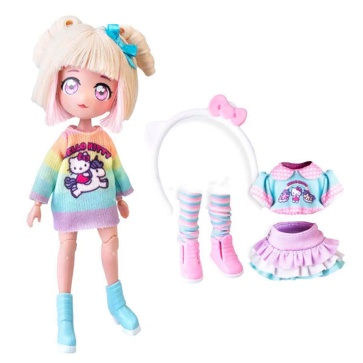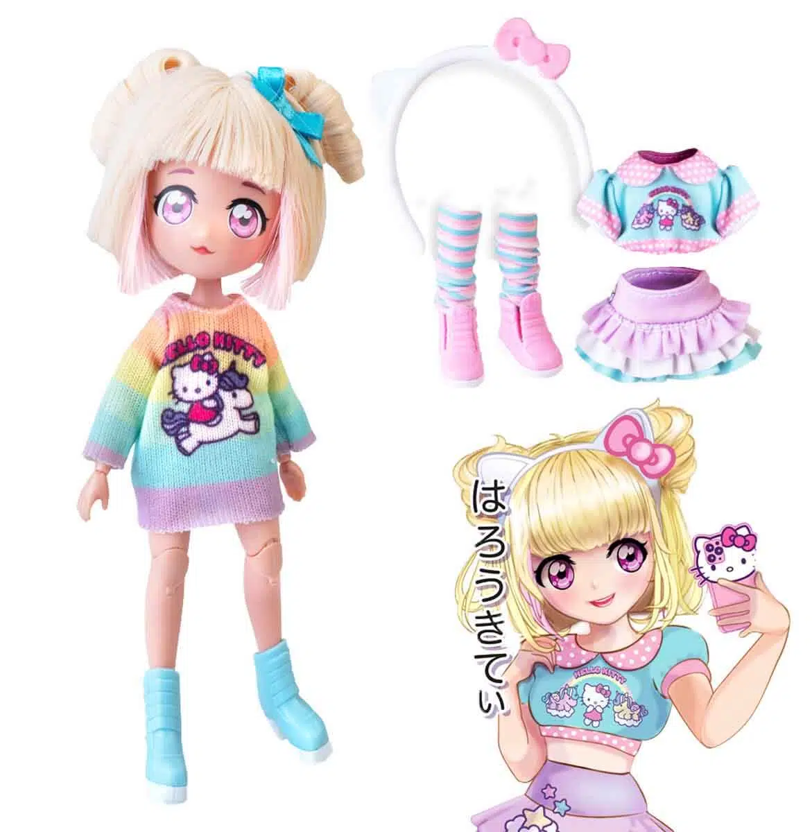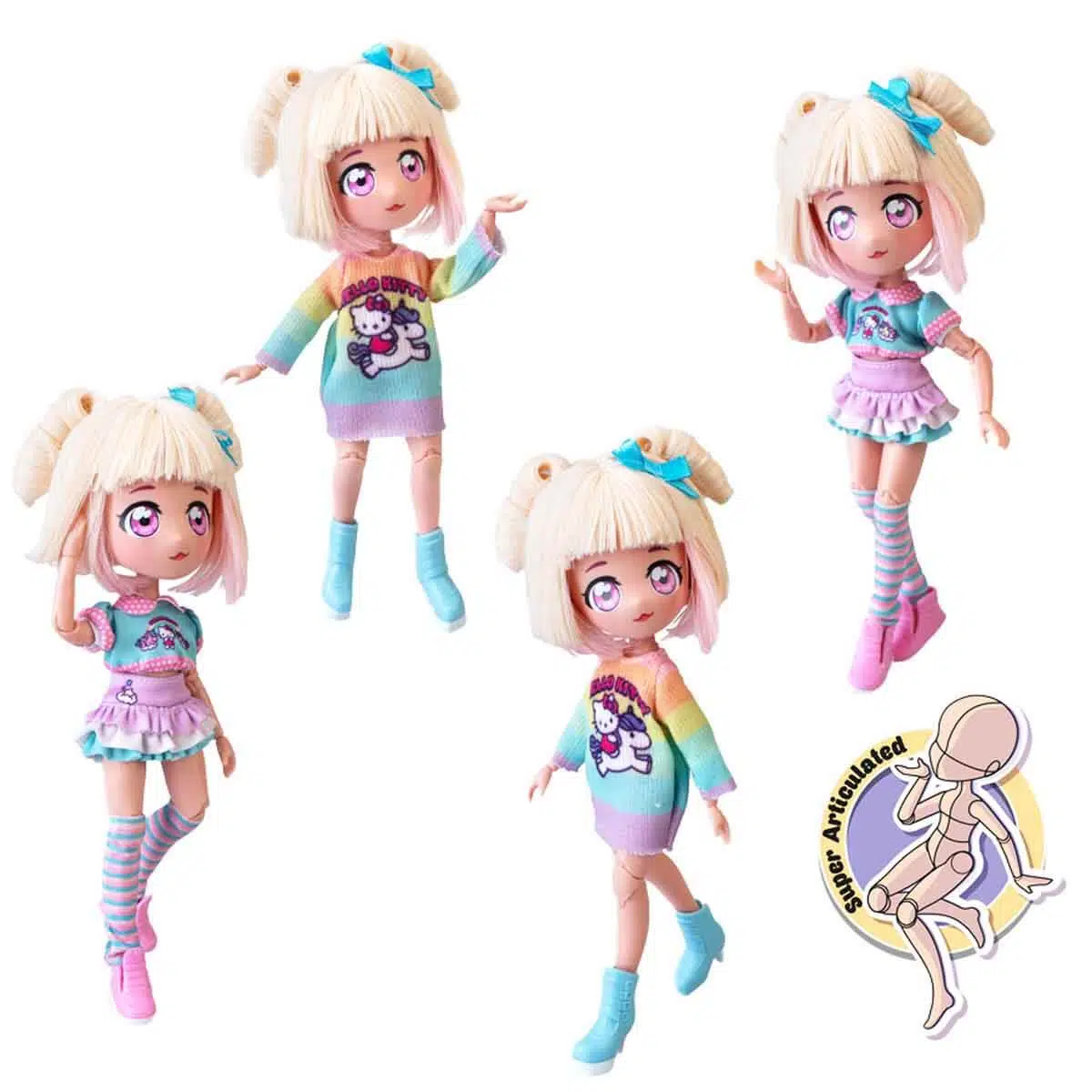 Hello Kitty Manga serisinin sayfalarından gelmiş gibi duran, enerjisi ve sevimliliği ile göz dolduran biri var: Fashion Unicorns! Kısa sarı saçları ve şirin kıyafetleri ile her an tüm dikkatleri üzerine çekebiliyor. Yedek kıyafetleri ve aksesuarları ile odanın en neşeli yıldızı olmaya hazır!