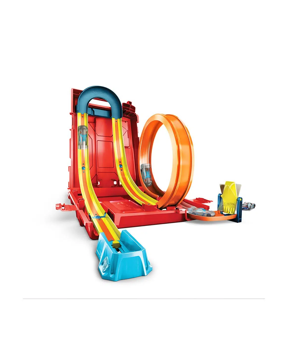 Çocukların, hayallerini süsleyen pist sistemini inşa etmeyi sürdürebilmesi için tüm parçalar diğer Hot Wheels® pist setleriyle uyumludur.