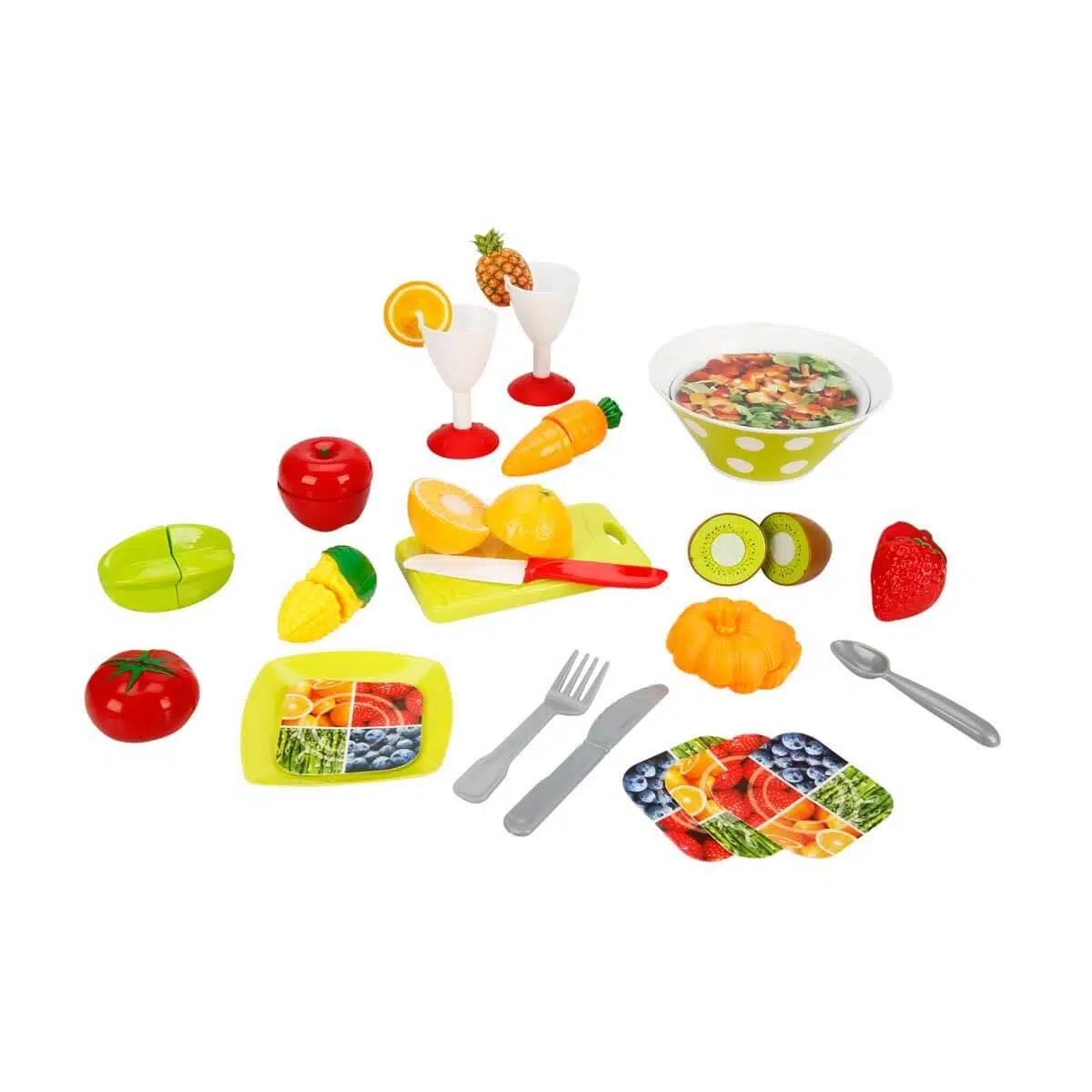 30 parçadan oluşan bu set içerisinde çeşitli sebze ve meyveler, kesme tahtası, kesme bıçağı, servis tabakları gibi çeşitli aksesuarlar yer almaktadır.