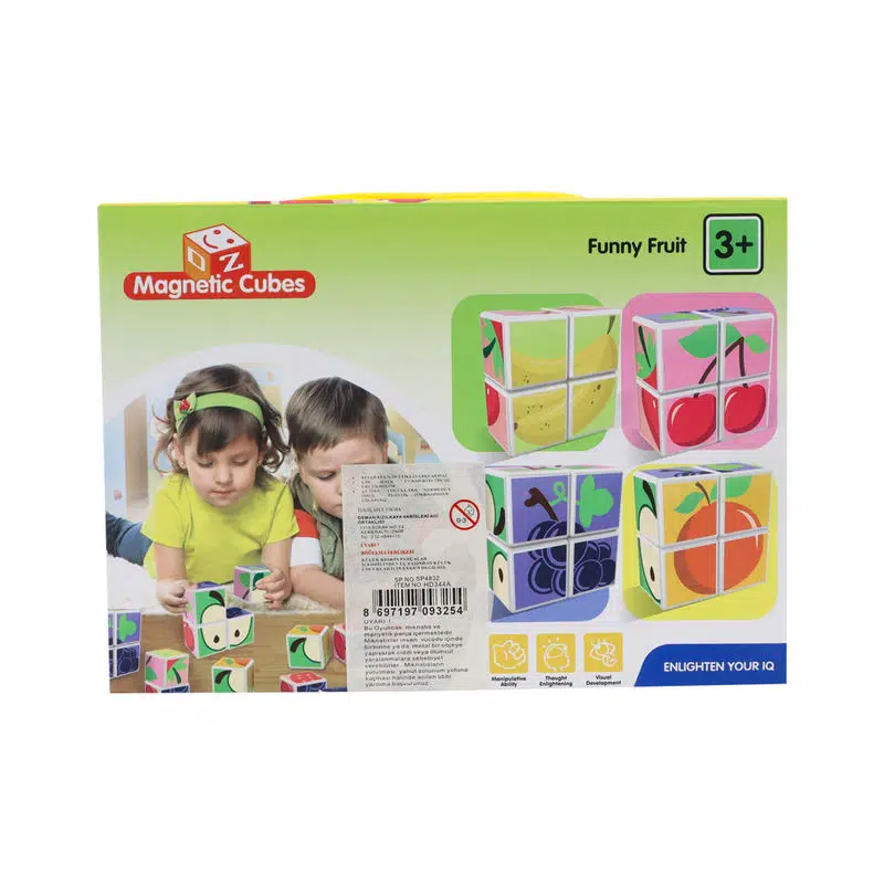 Manyetik küpler her 6 tarafı birbirine yapışır ve her renkte ve şekillerde meyve ve hayvanlar oluşturur ve böylece eğlence artık bitmeyecek.