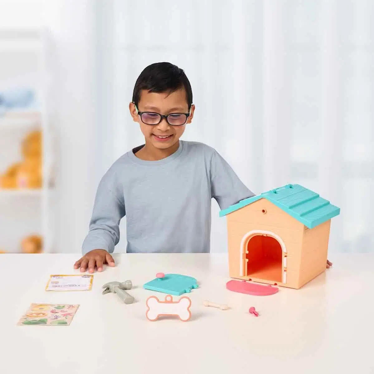 Kapı takılıyor, karşılama paspası içeri kaydırılıyor, çıkartmalar ile kulübe süsleniyor, çekiç ve çivi yardımıyla yeni dostun isim plakası eve eklenerek son dokunuş yapılıyor. Hepsi tamamlandığında kapıyı açma zamanı! İçeriden çok mu çok sevimli bir köpek yavrusu beliriyor. Her biri birbirinden sevimli 6 farklı köpek yavrusundan bakalım sana hangisi çıkacak!