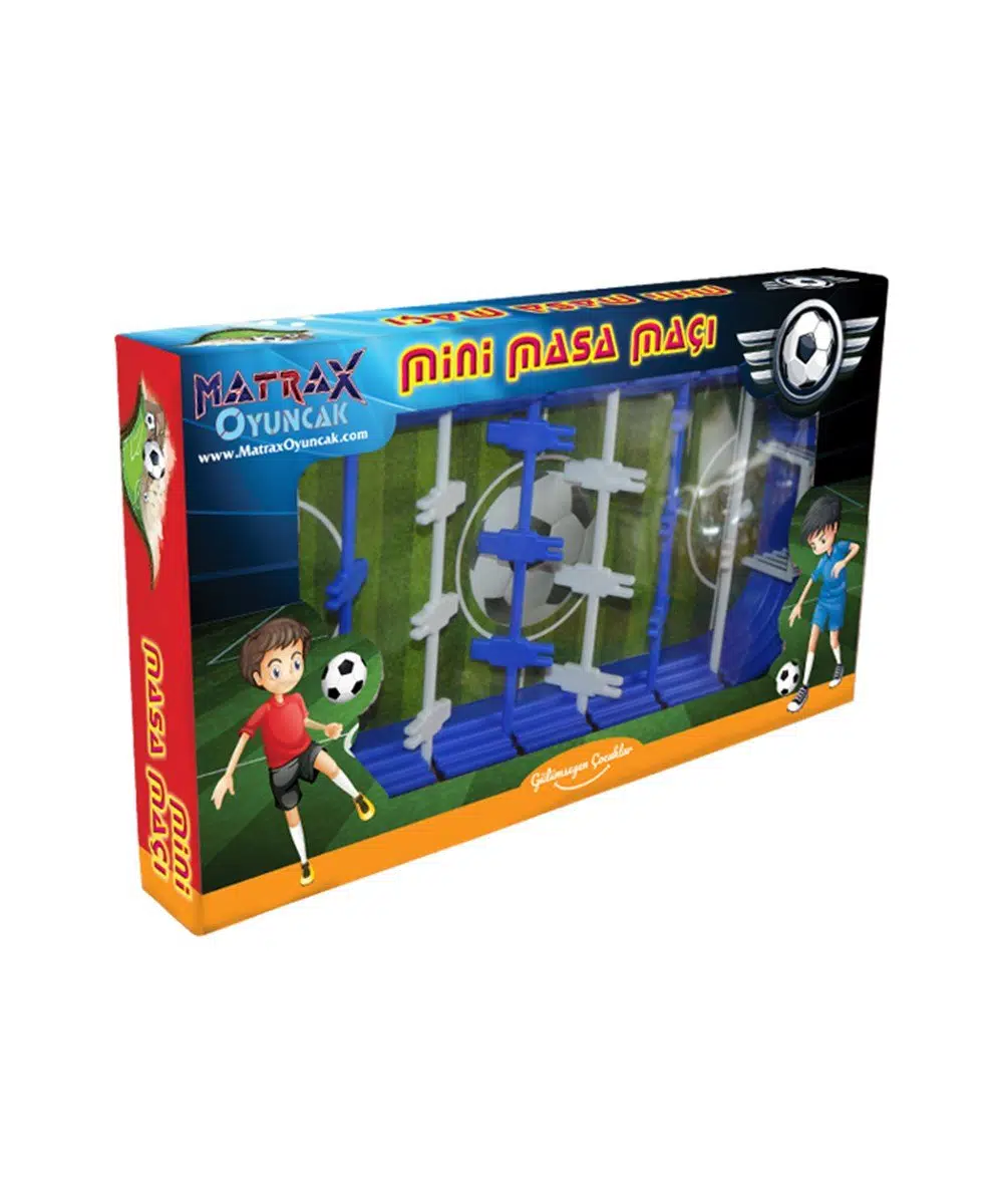 Özel pencereli kutusundaki Mini Masa Maçı ürünümüz, diğer tüm ürünlerimizde olduğu gibi; çocuk sağlığına uygun ham madde ve boya ile üretilmiştir.