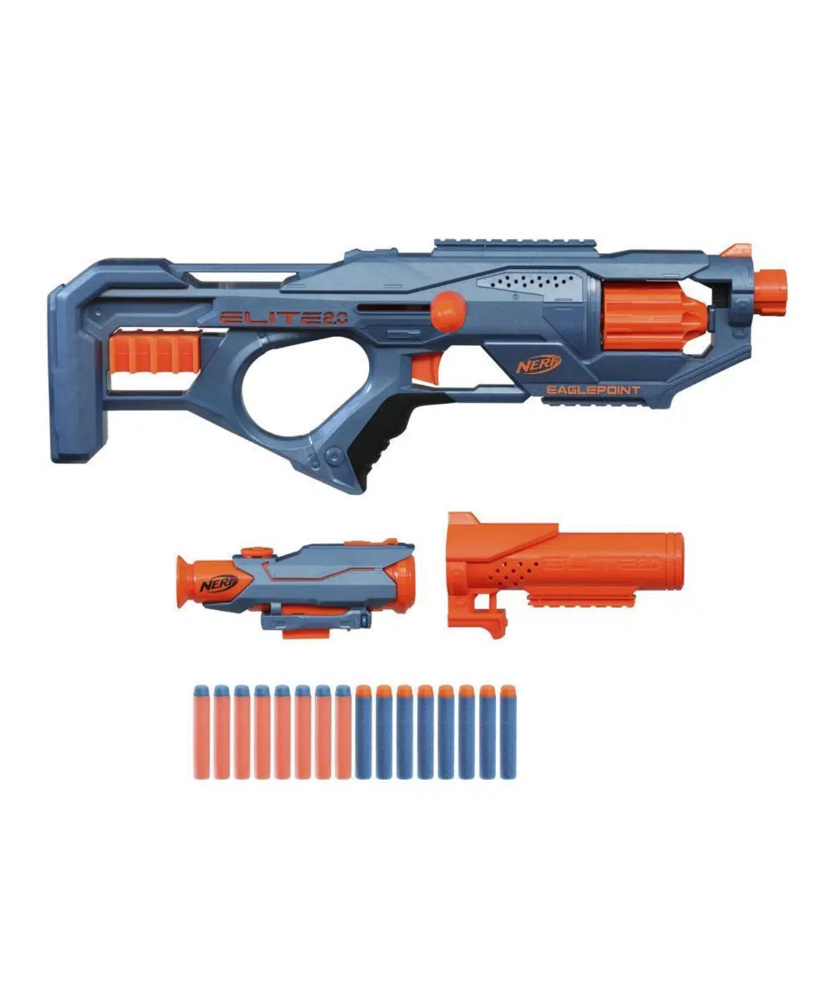 KAPSAMLI VE NAMLULU HERHANGİ BİR GÖREV İÇİN PARLATICIYI ÖZELLEŞTİR: Nerf Elite 2.0 Eaglepoint RD-8 blaster, herhangi bir görev için farklı blaster stilleri oluşturmak için çıkarılabilir bir kapsam ve namlu içerir.