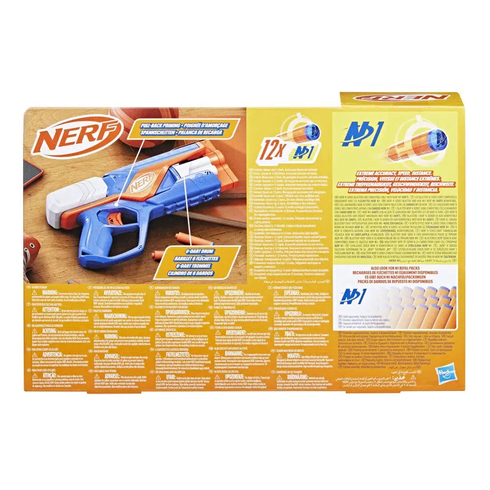 Nerf N Serisi Agility dart tabancası 6 dart kapasiteli döner şarjöre sahiptir, 12 adet Nerf N1 köpük dart içerir ve geriye çekilerek kurulur.