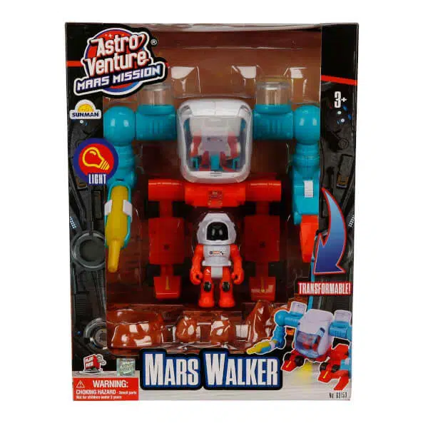 Işıklı mars gezgini yürüteci, insan keşfine yardımcı bir uzay robotu olan bir Mars Walker'ı içerir. Mars'ta çalışma yapmak için yürüteç modundan araç moduna dönüştürülebilir. Kıskaçlı el, su pompası ve sırt çantası olan bir astronot figürü ile donatılmıştır.