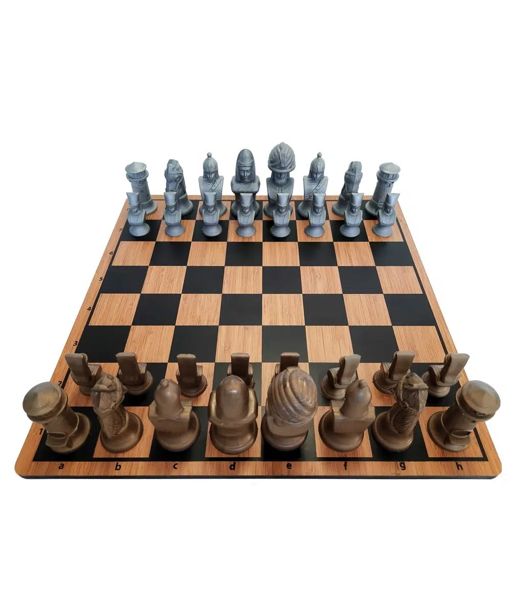 Oyunun başında beyaz ve siyahların 16 taşı bulunur. Bunlar bir Şah, bir vezir, iki kale, iki fil, iki at ve sekiz piyondan oluşur.